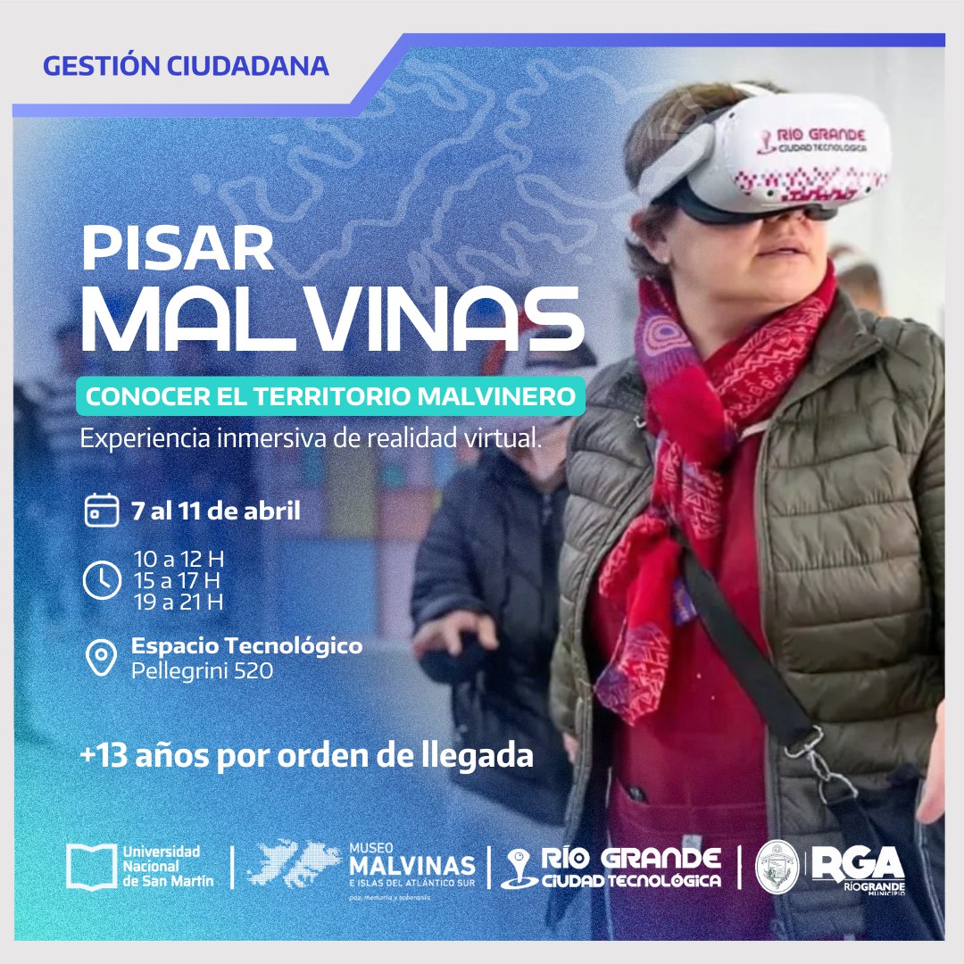 Mediante una experiencia inmersiva de realidad virtual vas a poder conocer simbólicamente el territorio malvinero y observar su paisaje, su geografía y fauna.